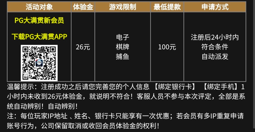 【大满贯n62】历史回馈/注册彩金26元